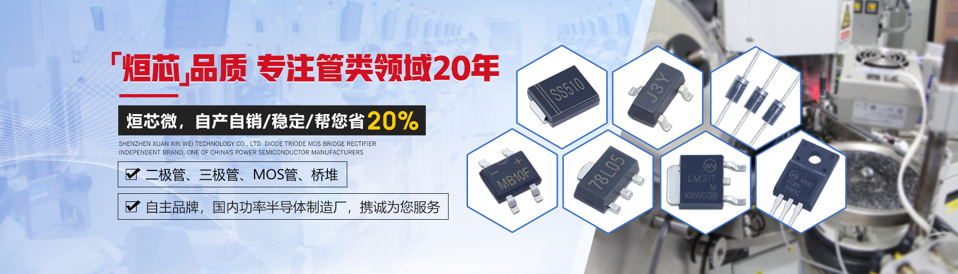 烜芯微專業(yè)制造二極管,三極管,MOS管,橋堆20年,工廠直銷省20%,1500家電路電器生產企業(yè)選用,專業(yè)的工程師幫您穩(wěn)定好每一批產品,如果您有遇到什么需要幫助解決的,可以點擊右邊的工程師,或者點擊銷售經理給您精準的報價以及產品介紹